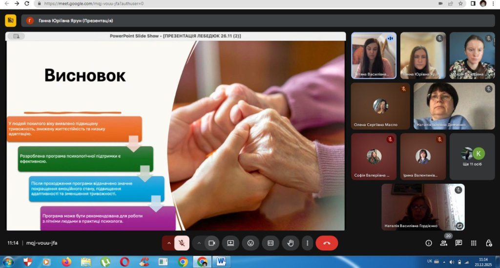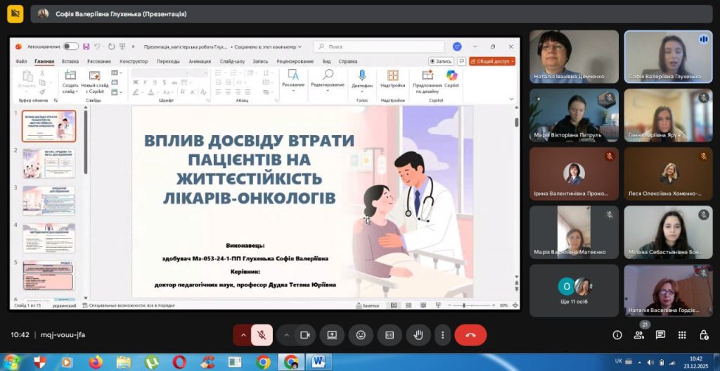 На кафедрі педагогіки та психології професійної освіти факультету наук про здоров’я (ФНЗ) відбувся захист кваліфікаційних робіт здобувачів вищої освіти ступеня магістра заочної форми навчання за спеціальністю 053 «Психологія» освітньою програмою «Практична психологія». Ця подія стала фінальним акордом освітнього процесу та підсумком науково-дослідної і практичної підготовки майбутніх фахівців.